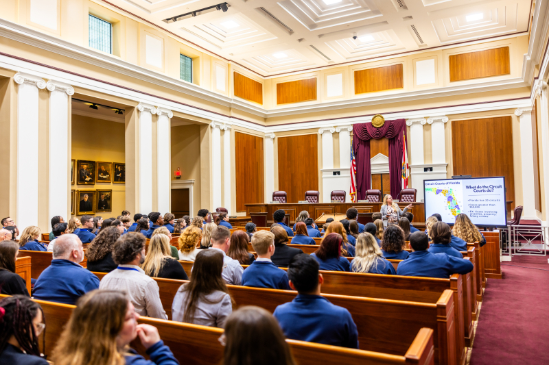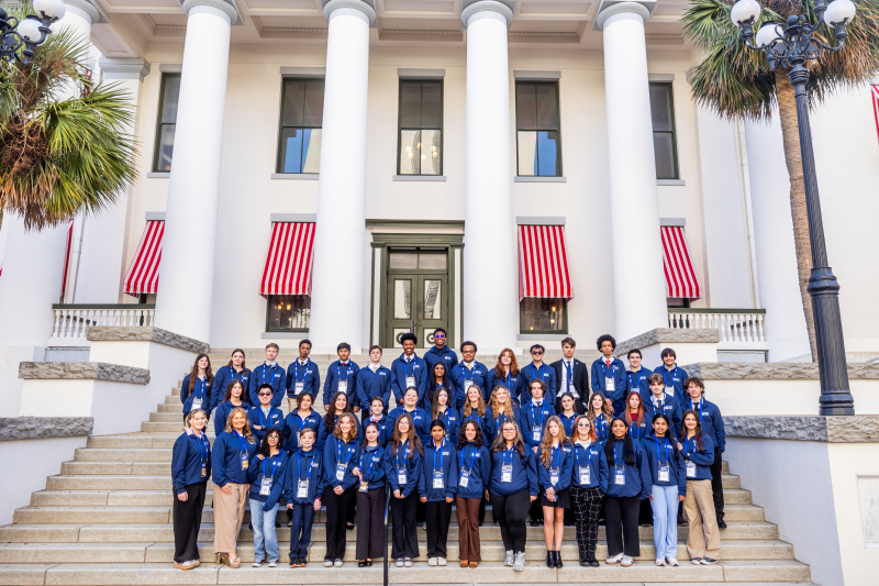 Tallahassee, Fla., February 17, 2026 – The Florida Civics and Debate (FCDI) Day at the Capitol was held February 17, in Tallahassee, to provide more than 100 speech and debate student leaders, coaches and parents the opportunity to experience state government firsthand during the 2026 legislative session. Participants were fully immersed in learning about the legislative process, from participating in a mock session on the Florida Capitol’s House Chamber floor, to touring the Florida Supreme Court and hearing from state leaders such as Senator Jonathan Martin, Senator Erin Grall, Senate President Pro Tempore Jason Brodeur, former House Speaker Steve Crisafulli, 2026 Teacher of the Year Mark Harrison and several lobbyists. The students, coaches and parents ended the day with the opportunity to observe the Florida House of Representatives in live legislative session and explore the Capitol.